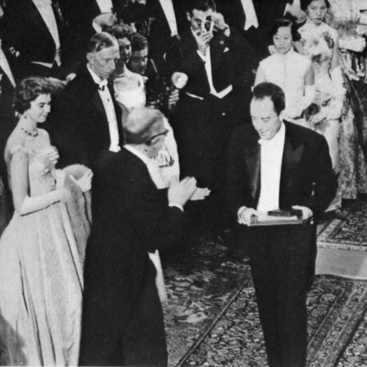 Le 10 décembre 1957, Albert Camus reçoit son prix Nobel à Stockholm, au cours d'une cérémonie très solennelle. Il a alors 44 ans.